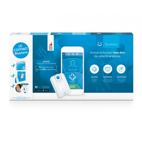 Bluetens ist ein medizinisches Gerät, dass mit der Technologie der Elektromuskelstimulation (EMS) arbeitet. Sie erhalten Zugang zu zahlreichen individuellen Behandlungen, die von medizinischen Fachkräften zur Verbesserung Ihres täglichen Wohlbefindens erarbeitet worden sind.
