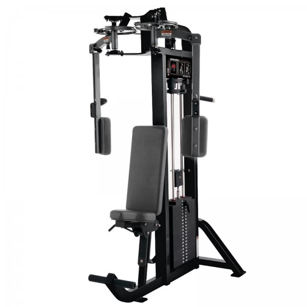 Mit der Kraftstation Pectoral Fly von Hammer Strength by Life Fitness lässt sich die Brustmuskulatur ganzheitlich trainieren. Neben der Brustmuskulatur wird ein Teil der Schultermuskulatur ebenfalls trainiert. Die Sitzhöhe des Pectoral Fly lässt sich ganz einfach unter dem Sitz an die individuelle Körpergröße anpassen. Die Hebelarme erlauben ebenso die Anpassung an unterschiedliche Benutzer. Eine Querstrebe zum Aufsetzen der Füße gibt dem Benutzer mehr Stabilität und der individuelle Bewegungsumfang ist mit dem Startmechanismus in 5 Positionen einstellbar. Der gute Bewegungsablauf resultiert unter anderem aus den nylonbeschichteten Kabeln, die den US-Militärnormen entsprechen.