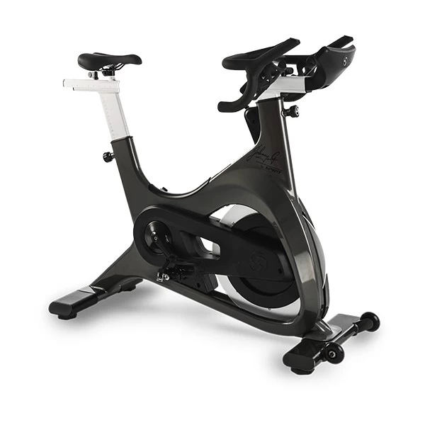 Das Johnny G Spirit Bike ist aus hochwertigen Komponenten konstruiert und übertrifft an Eleganz. Der massive Stahlrahmen wird plattiert, pulverbeschichtet und anschließend mit Klarlack veredelt, wodurch eine einzigartige Verkleidung entsteht. Das grau-schwarze Design passt sich jeder Umgebung an und das Rad ist sowohl für Wohn– als auch für Fitnessräume gleichermaßen geeignet.